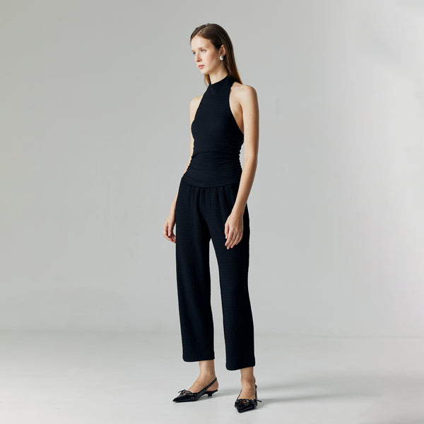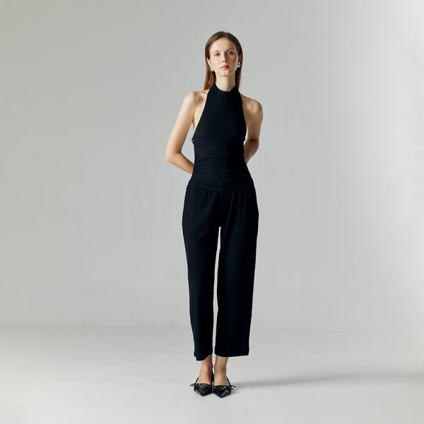 The Nora Knit Set is designed for a sleek yet effortless silhouette. Made from a stretchy crinkle knit fabric, it contours the body comfortably while maintaining a refined structure. The halter neckline adds a touch of modern sophistication, perfect for both casual outings and elevated occasions.