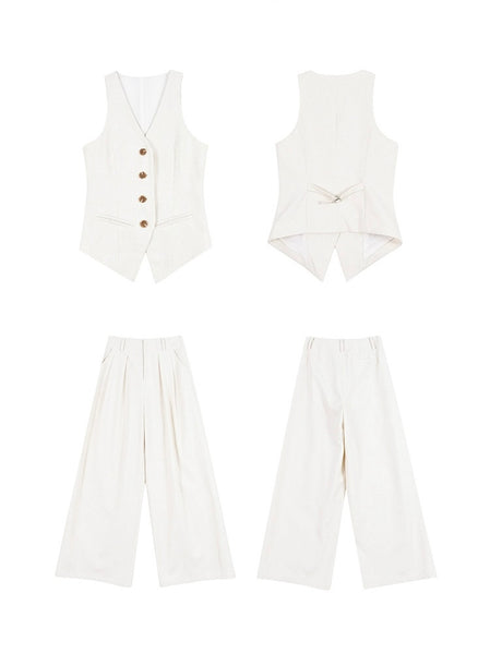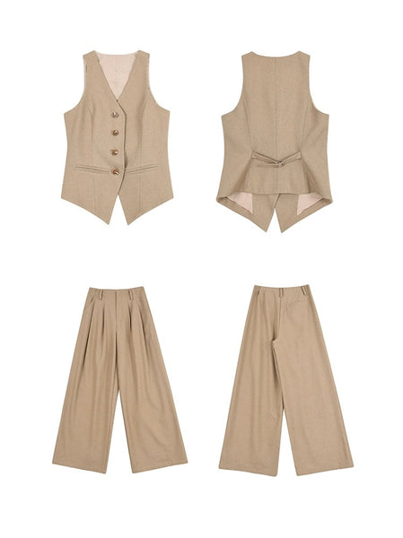 -Vest: V neckline, sleeveless, button fastening, adjustable back, split hem