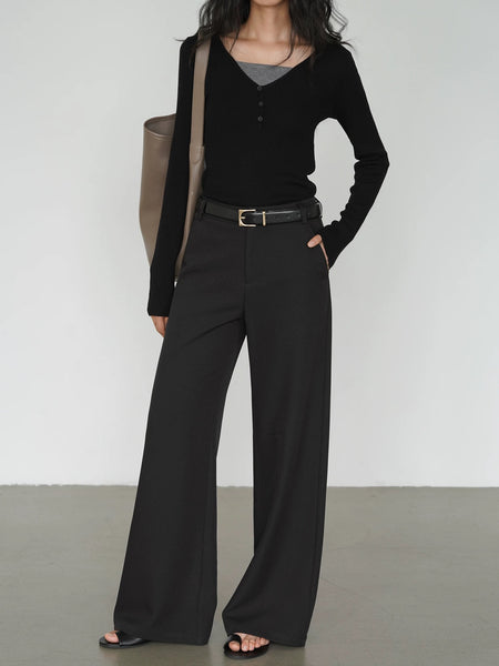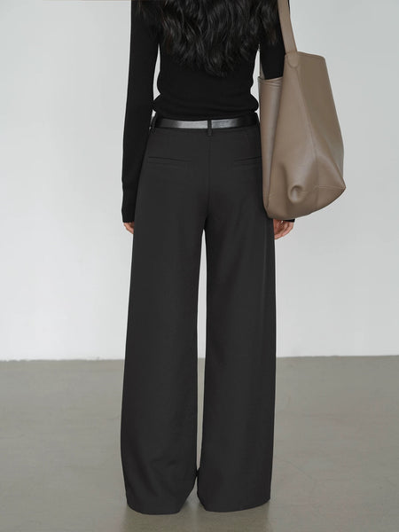 Classic Wide Leg Tailored Trousers in Black