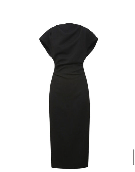 Korean Gathered Sheath Midi Dress [2 Colours]