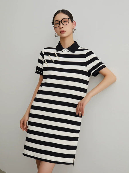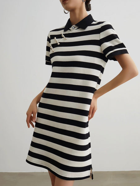 -Collar neckline, short sleeves