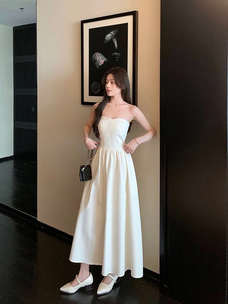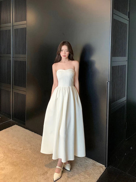 -Sweetheart bustier neckline, sewn in bra padding,  A-line skirt body