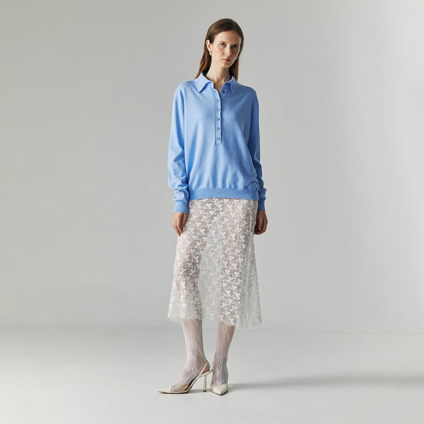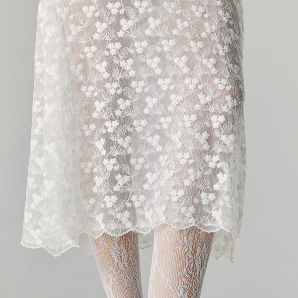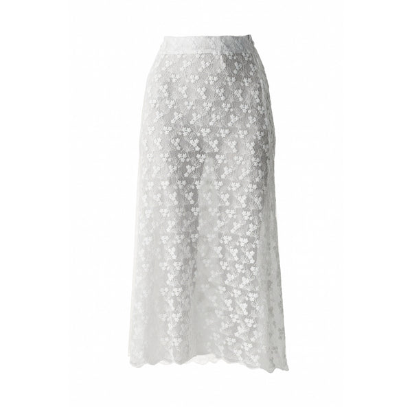 This delicate lace midi skirt adds a touch of romance and sophistication to any outfit. Designed with a beautifully detailed floral pattern and subtle 3D flower accents, it creates an airy and graceful silhouette that moves elegantly with every step.
