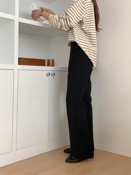 -High waist with a hidden inner elastic band, flare cut pant leg