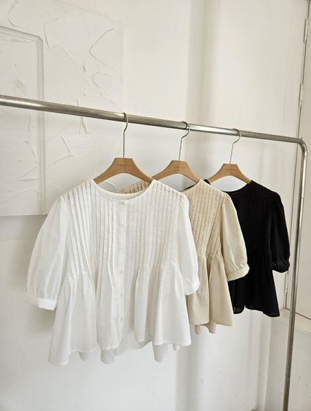 [Ready to Ship] Korean Pleat Blouson Blouse [3 Colours]