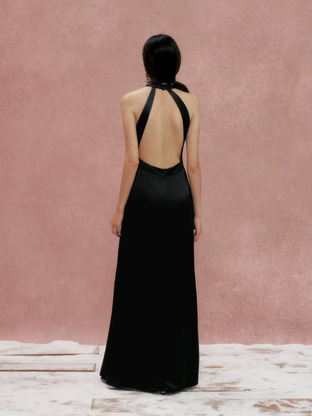 -High neckline with deep V cutout, zip fastening