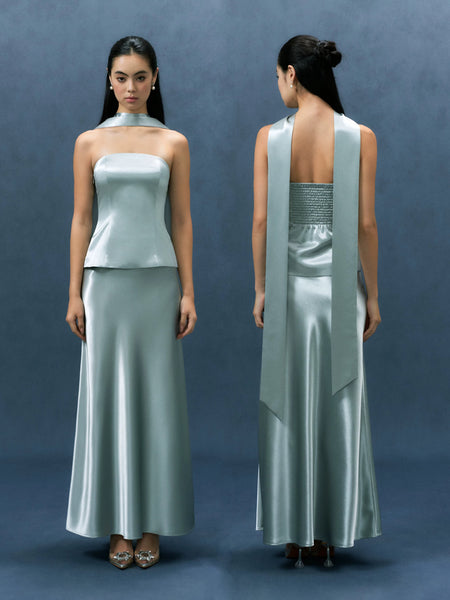 Satin Halter Bustier Top// Maxi Skirt [2 Colours]